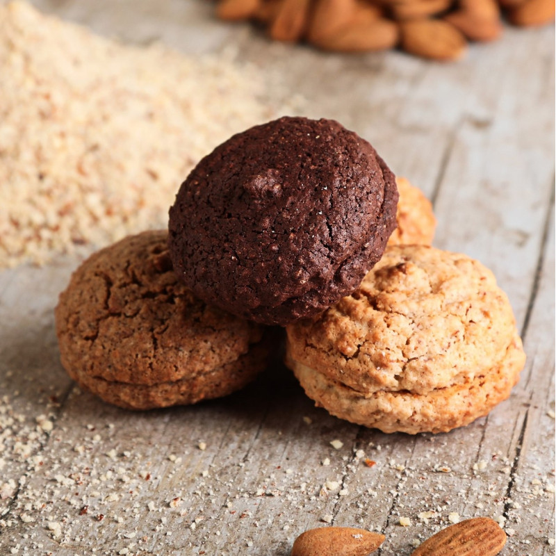 The authentic, old-fashioned, soft macaroon, made according to the ancestral recipe served at the tables of the Counts of the Provence and Languedoc regions, since the early Middle Ages. It is composed of 2 biscuits stuck together straight out of the oven, without cream or ganache..